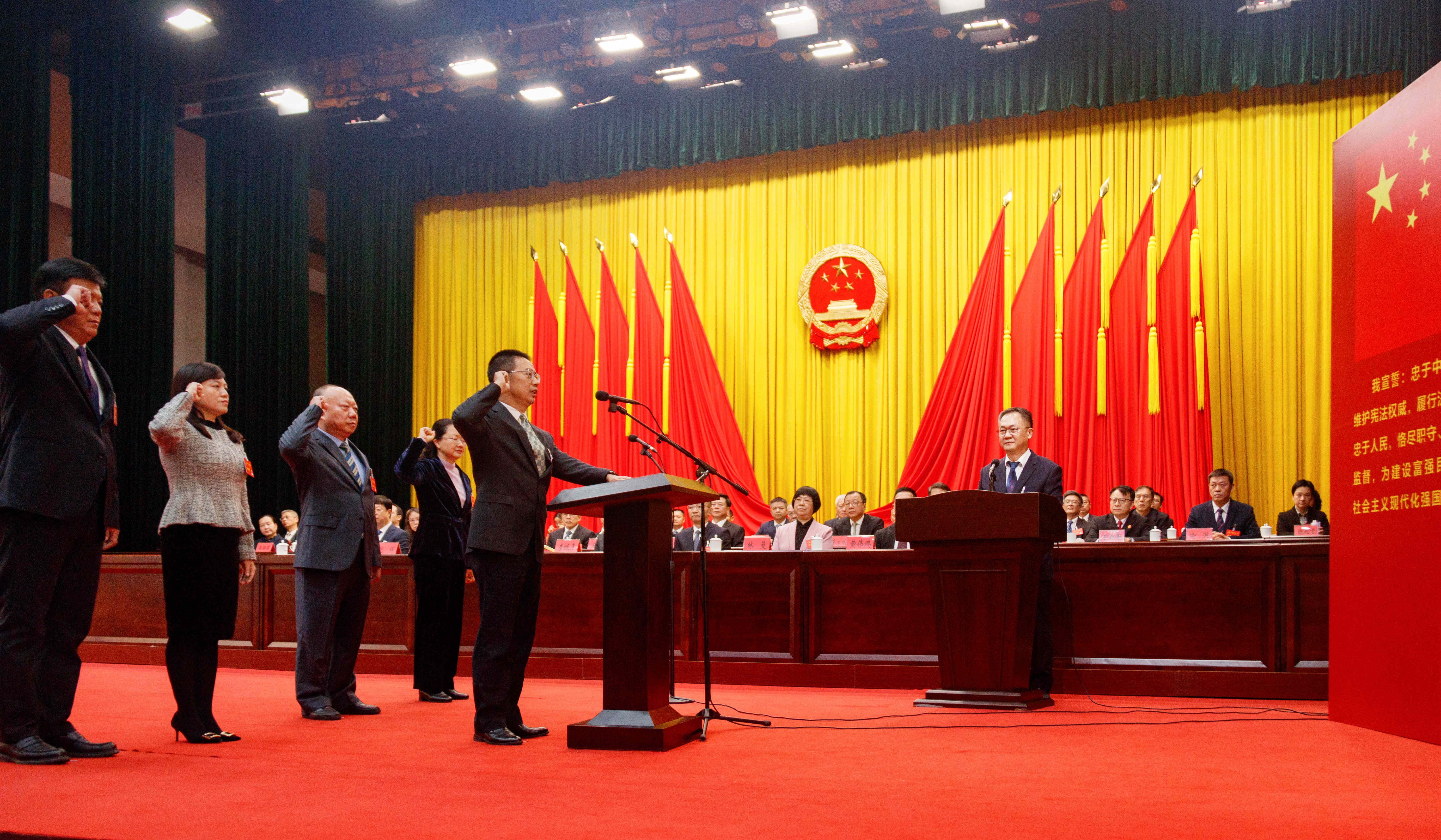 市人大常委会主任项天保主持新当选人员宪法宣誓仪式。