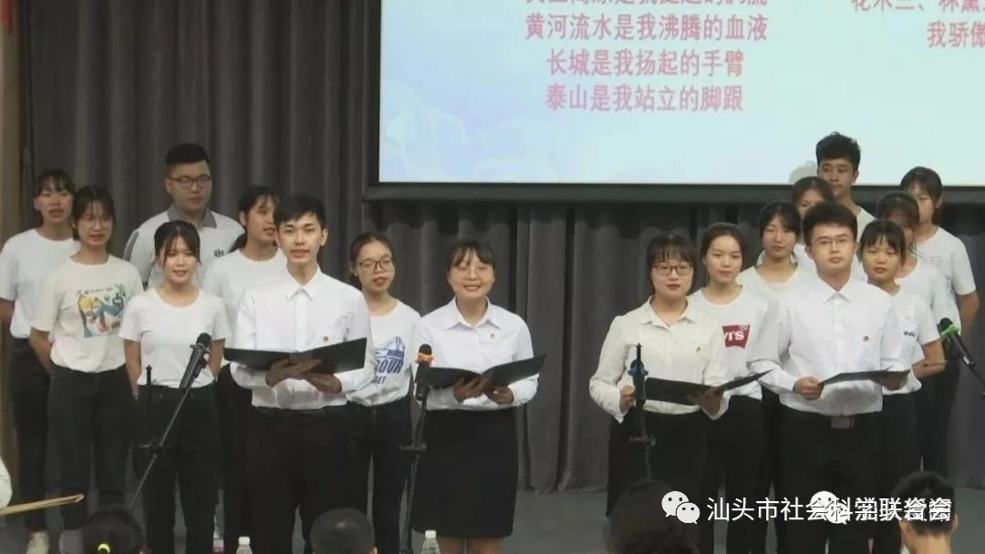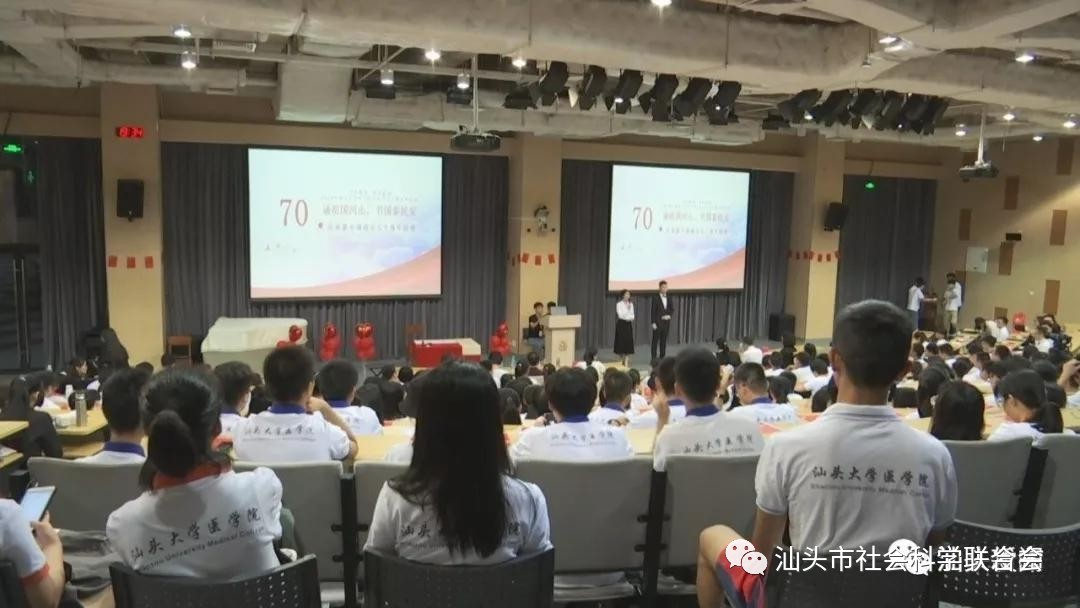 9月27日晚,汕大医学院举办庆祝新中国成立70周年文艺活动,同学们倾情演绎了自己创作的诗歌朗诵、合唱等节目,在浓烈、激昂的氛围中,回顾新中国波澜壮阔70年的发展历程,歌颂祖国大好河山,展现当代青年拳拳中国心、炽热中国情。当台上唱响《我和我的祖国》时,台下的同学齐齐挥动手中的国旗,共同祝愿新中国生日快乐,祝福祖国繁荣兴盛。